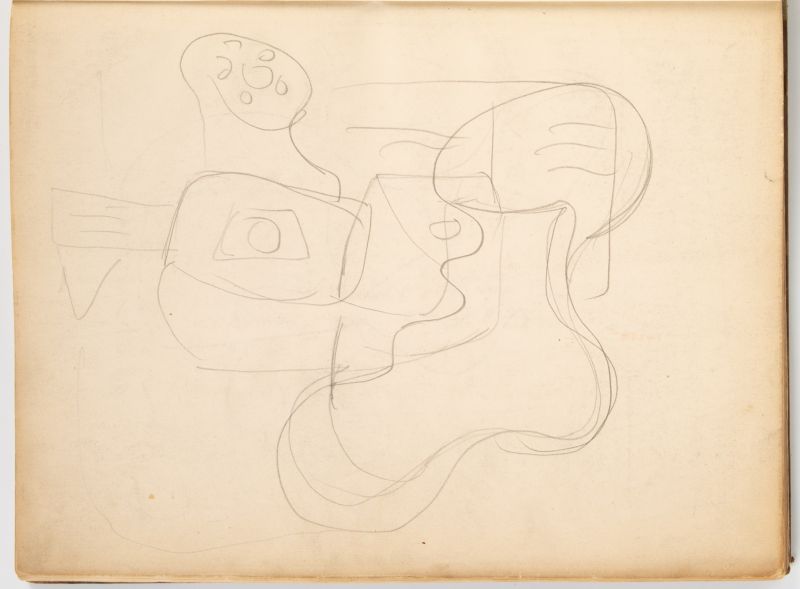 The drawing is compositionally related to two paintings by Gorky, both of which were titled Still Life during his lifetime and dated to 1929 by him (see related work). The paintings were included in the artist's first solo museum exhibition held at the San Francisco Museum of Art in August 1941 (see 1941 San Fransisco).