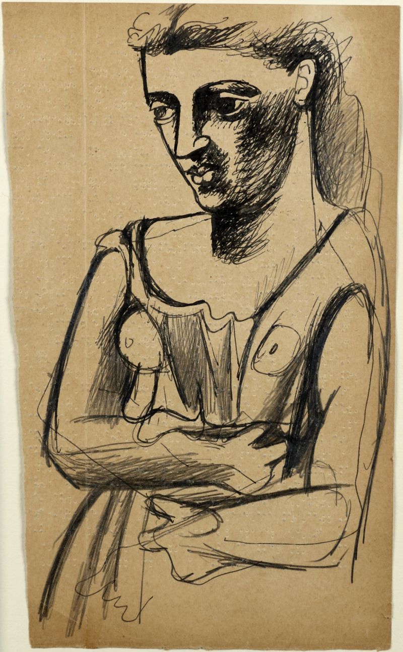 For over a decade—between c. 1927 and 1942—Gorky studied and emulated the lessons of Pablo Picasso’s (1881–1973) oeuvre: his early twentieth-century explorations into Primitive art; complex arrangements of cubism; simplified still lifes of the early 1920s; neoclassical turn of the interwar period; and biomorphic forms that began in the later 1920s and continued into the following decade. Though Picasso's influence is clear in a number of works, such as this one, Gorky almost never directly copied a painting by the artist.